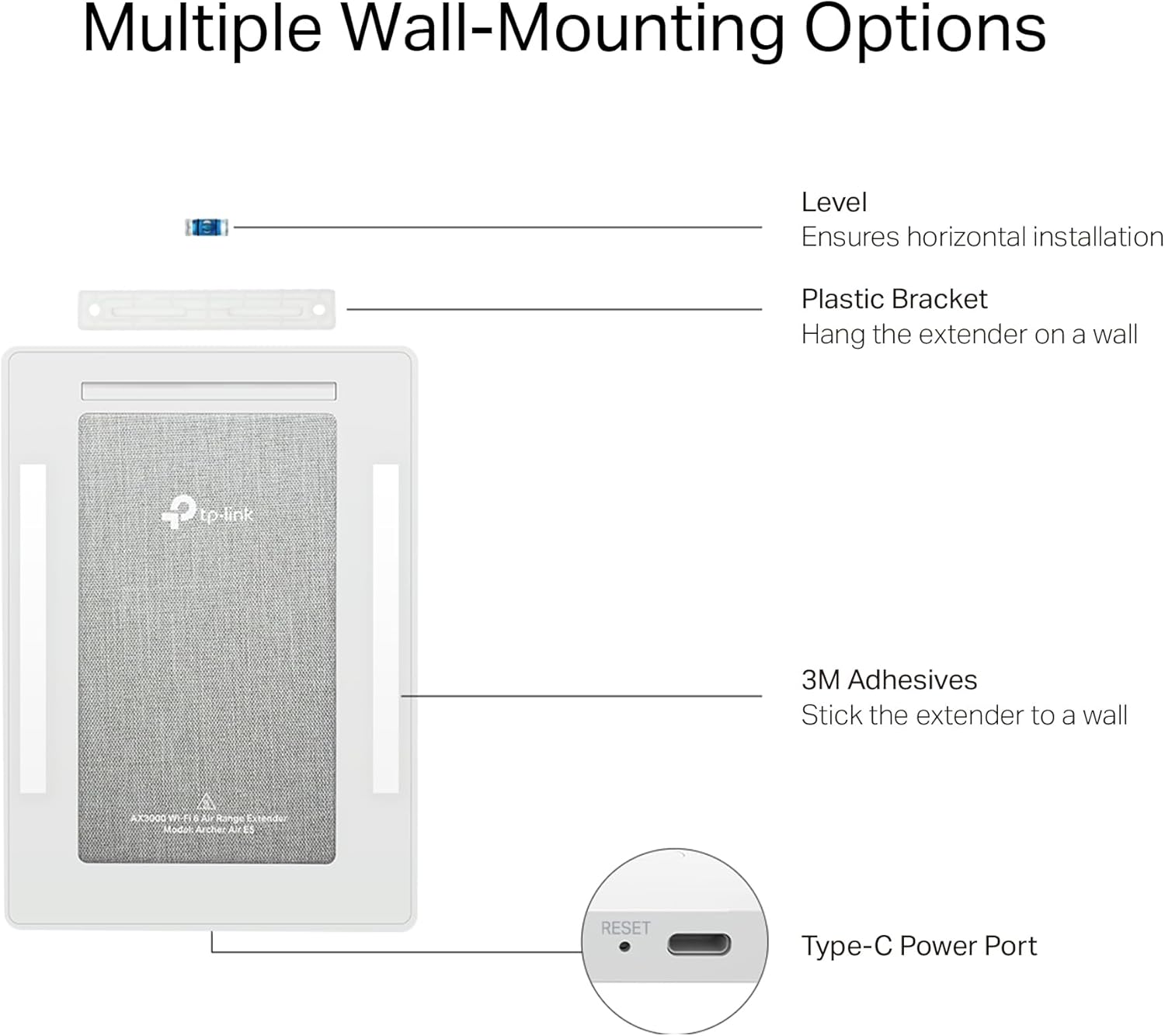 TP-Link AX3000 Wall-Mounted Wi-Fi 6 Range Extender Archer Air E5 | Ultra-Thin & Compact | Up to 2,700 sq. ft. | Dual Band Wi-Fi | Smart Beamforming Antennas | EasyMesh | Mounting Materials Included